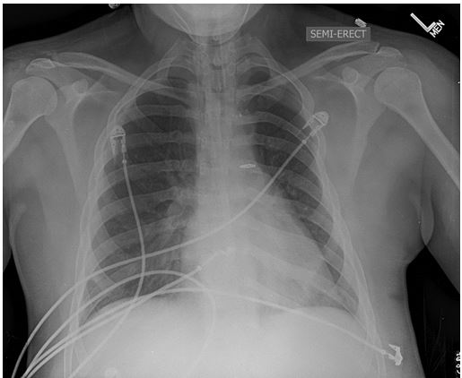 Figure 1. Chest Radiograph showing generally clear lung fields without obvious focal airspace disease.