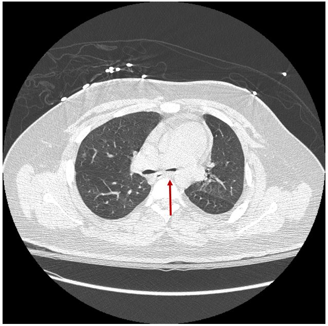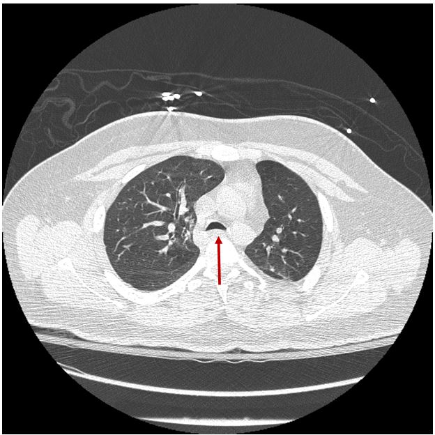 Figure 2.1 Computed Tomography (CT) of the chest showing decreased anterior-posterior diameter of the tracheal lumen