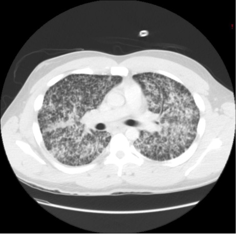 Figure 2: Computed Tomography (CT) of the chest demonstrated diffuse micro-nodular infiltrates throughout both lung fields without associated lymphadenopathy