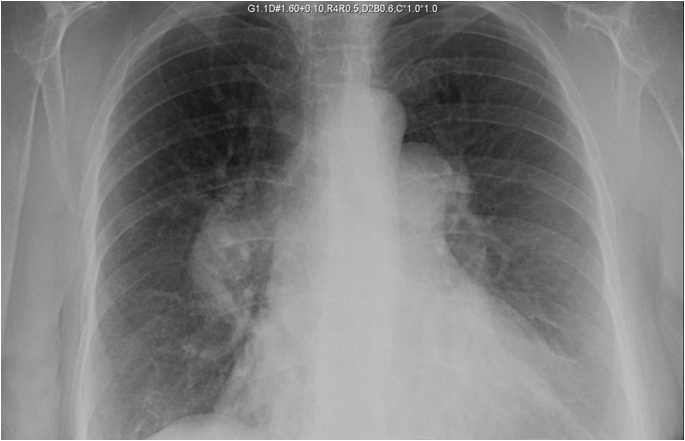 Figure 1. Posterior-anterior chest radiograph showing massive enlargement of the right and left pulmonary artery.
