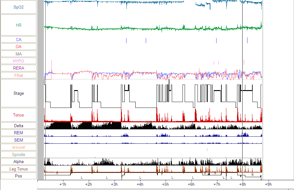 Figure 3: Hypnogram from follow-up PSG showing significant improvement in sleep-disordered breathing.