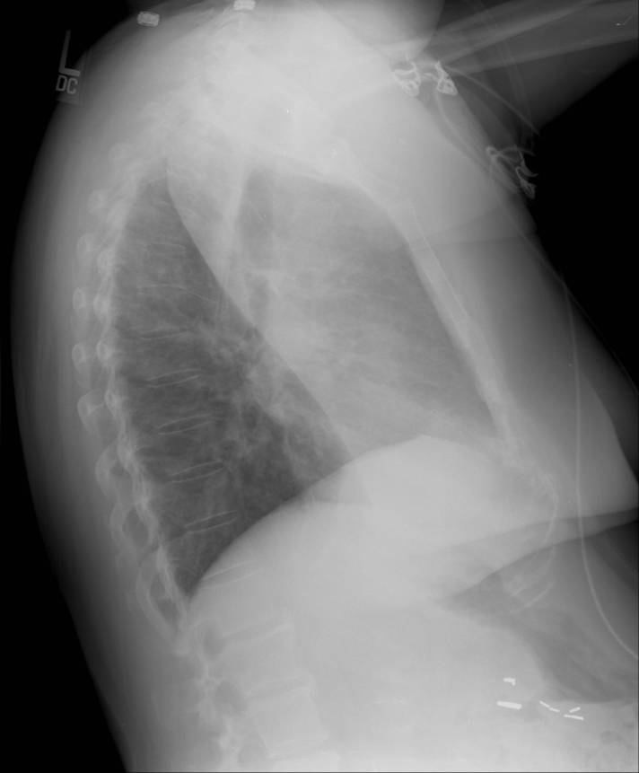 Figure 2. Lateral view on chest x-ray demonstrating left upper lobe consolidation.