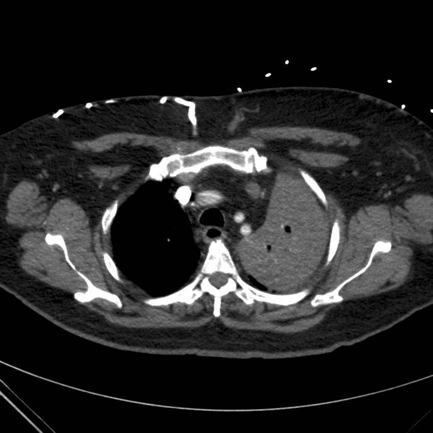 Subsequently the patient underwent computed tomography (CT) of the chest with pulmonary angiography. Two cuts are provided below (Figures 3 and 4).