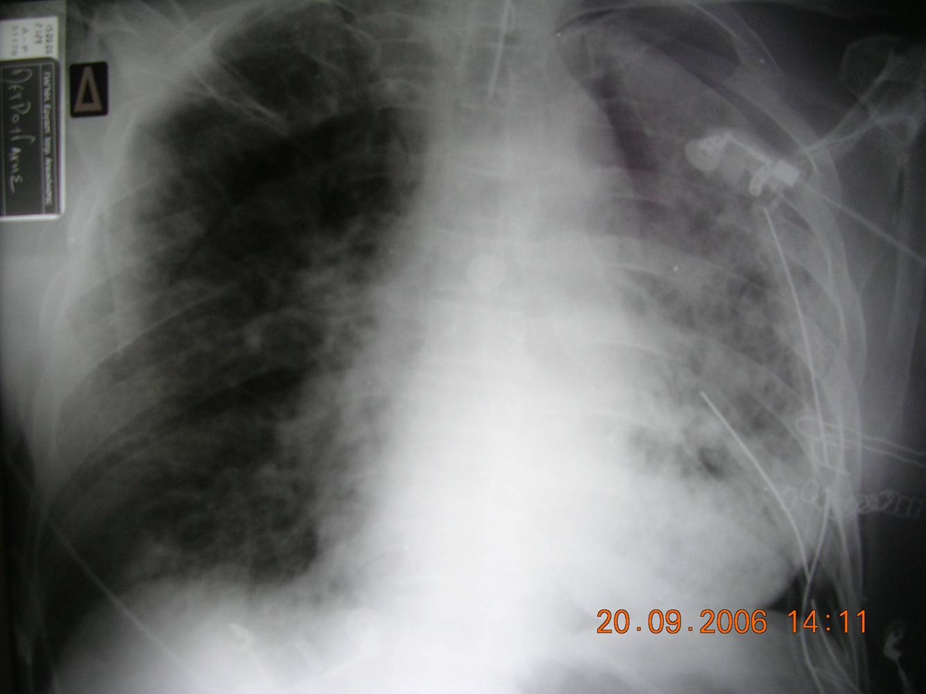 The patient developed non-cardiogenic pulmonary edema that meets the criteria of Acute Lung Injury/Acute Respiratory Distress Syndrome (ALI/ARDS) established by the American-European Consensus Conference in 1994 1: