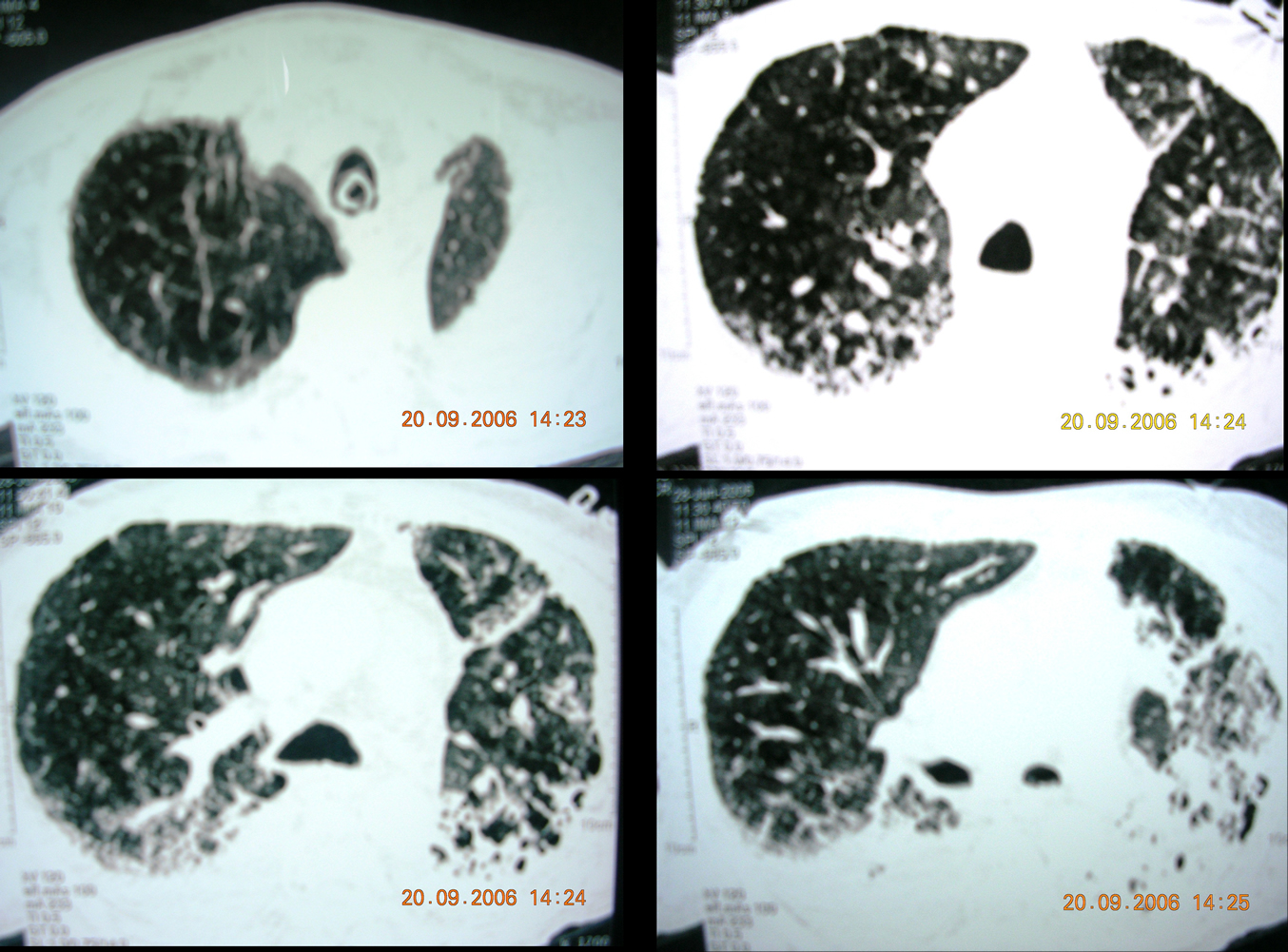 - Chest Spiral CT with PE protocol (Fig 2): patchy consolidations with increased interstitial markings and alveolar filling, no filling defects in the pulmonary arteries