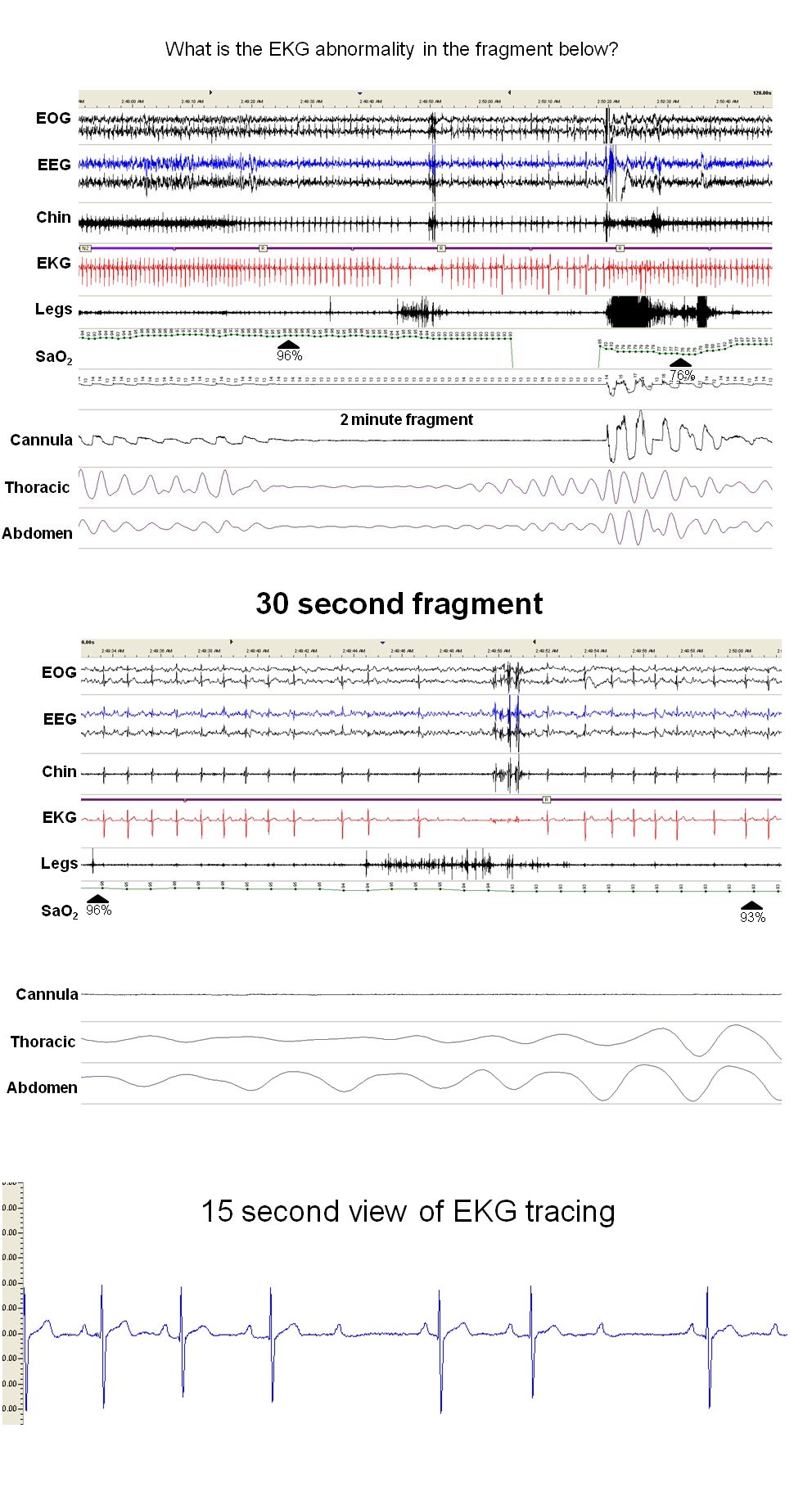- Since patients with severe OSA are predisposed to arrhythmias during sleep, careful review of the EKG tracing should be performed during sleep study interpretations.