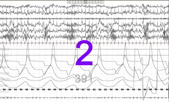 - This record demonstrates an epoch of N2 sleep, with very frequent spindles seen in the EEG leads (see answer fragment below). This is a frequent finding with benzodiazepine medications. Sleep spindles can also be seen with barbiturates and alcohol.